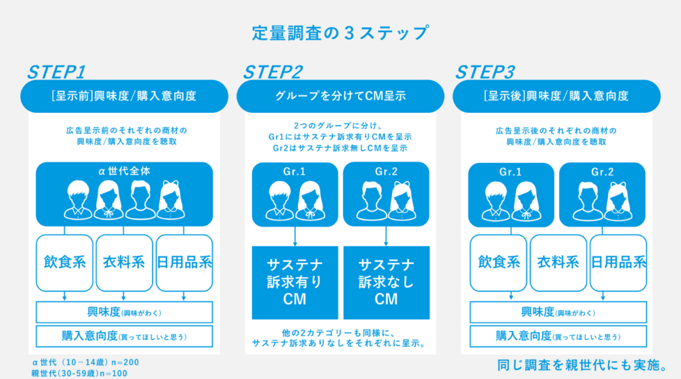 サステナブル訴求が、本当にα世代に対して効果的なのかを検証するために、独自に定量調査を実施しました。